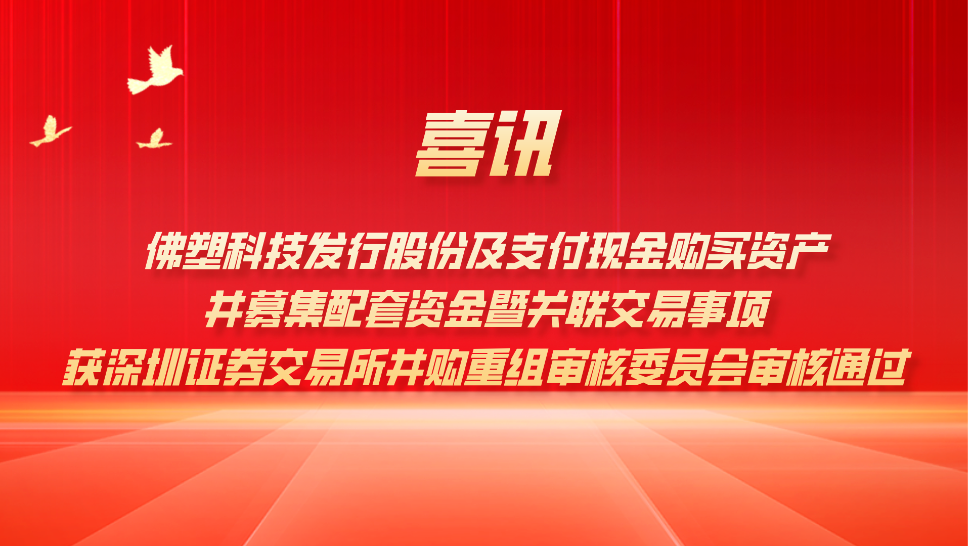 喜訊!佛塑科技發行股份及支付現金購買資產并募集配套資金暨關聯交易事項獲深圳證券交易所并購重組審核委員會審核通過
